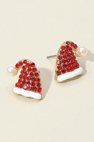 $18.00| /festive Santa hat earrings rhinestone and faux pearl details approx 0.75"