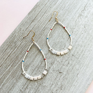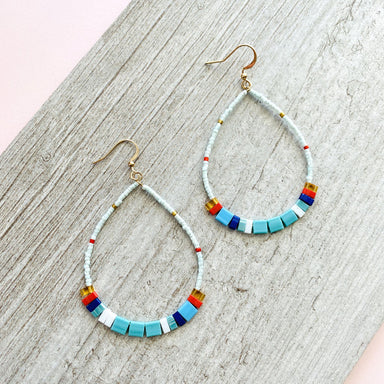 $24.00| /teardrop earrings beaded design mix of square and seed beads fish hook closure