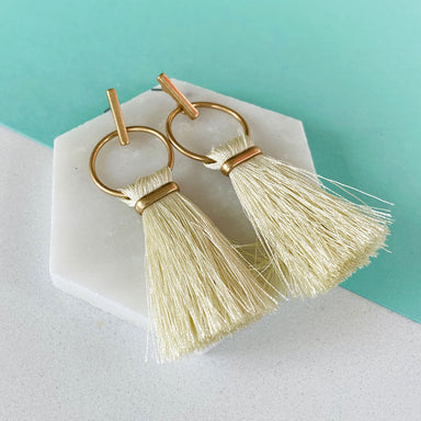 $18.00| /mixed shapes with tassel detail post earring with push back closure mixed metal