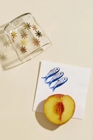 Add a splash of charm to your next gathering! These whimsical cocktail napkins, featuring hand-illustrated blue sardines, bring style to every sip...