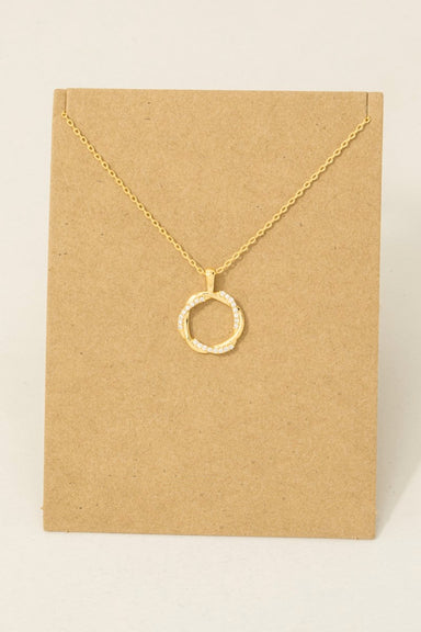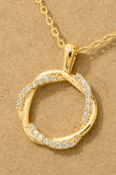 Tiara Necklace $28.00 | / twisted circle pendant necklace 18k gold dipped brass 70% brass 30% cubic zirconia approx 16" length More options available! Choose options Spinner icon