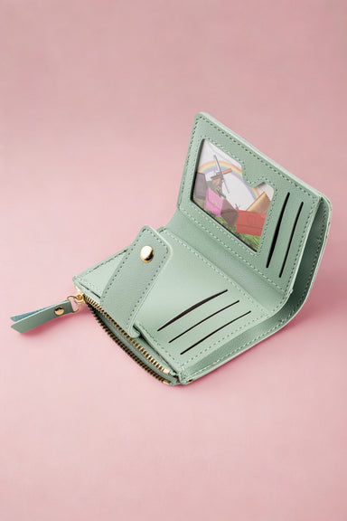 compact bifold wallet diamond stitch pattern snap closure 4.75" x 4" PU leather