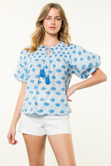The floral-inspired Arlington Top features puff sleeves, an all over print, and elastic hems. 100% Polyester