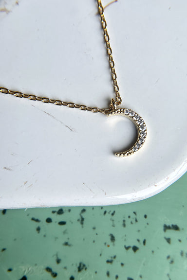 $28.00| /The celestial-inspired Cosmic Moon Necklace makes an impact with the inset shell detail. Length: 16"