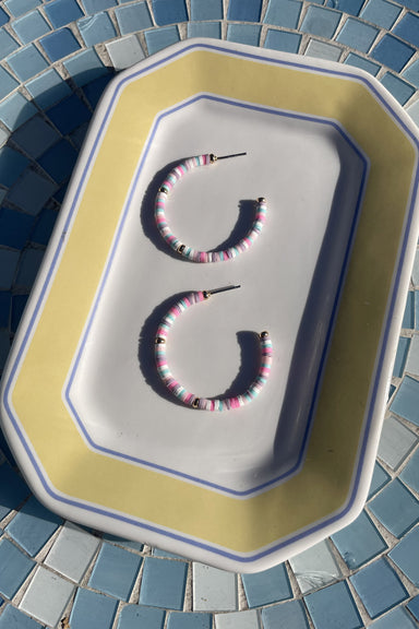 A flat hoop with a little pop of color and pattern - really stand out! Approx 1.5"