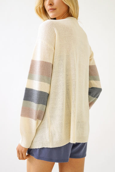 The perfect cardigan to throw in your bags for those warm days that turn into chilly nights. lightweight open cardigan color blocked sleeves
