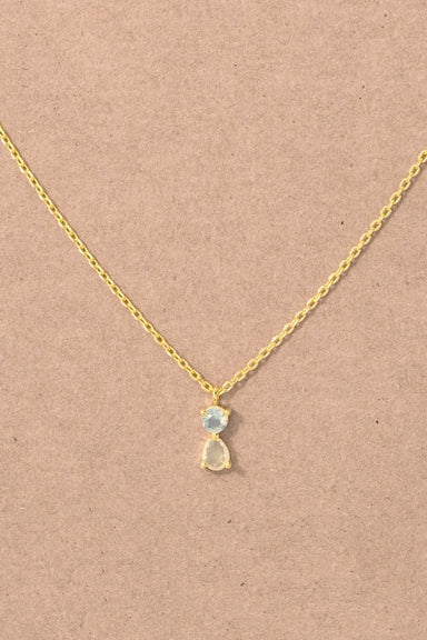 Cubic Zirconia circle and teardrop charm approx 16" length 18k gold dipped brass